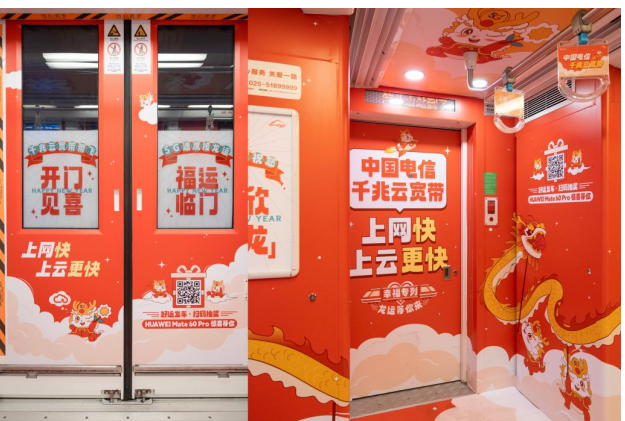 换上“中国红”龙年新装,开门见喜,福运临门……1月29日,由中国电信江苏公司(江苏电信)推出的创意主题“千兆云宽带”列车正式上线运行,在创意车厢里,市民除了能了解“千兆云宽带”产品,还能通过扫码抽取HUAWEI Mate 60Pro、会员权益年卡、流量、微信红包封面等众多江苏电信带给市民的惊喜新春大礼!