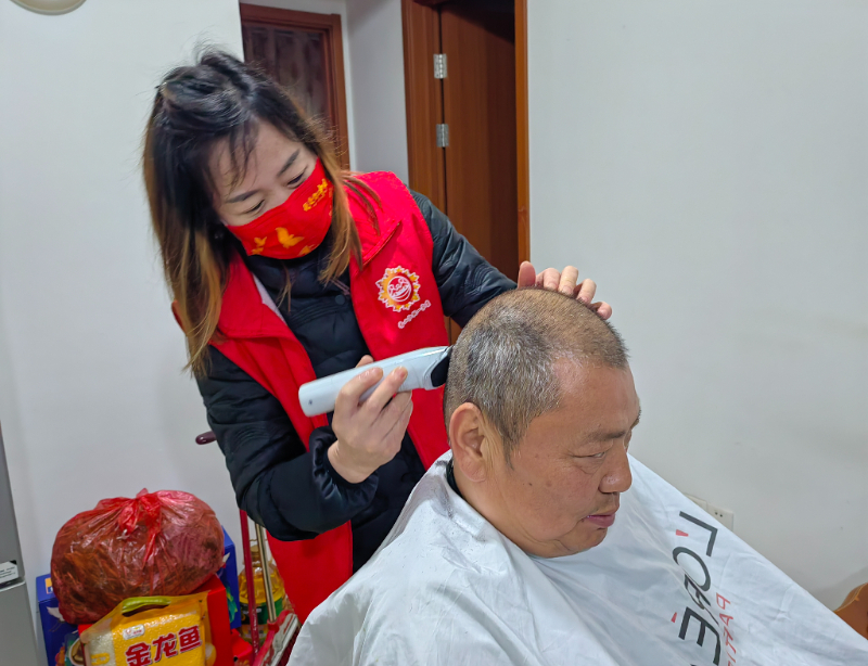 爱心义剪进家门,容光焕发迎新年。社区还邀请了理发师傅上门为高龄老人、残疾人提供免费的理发服务,让大家以清爽的新发型迎接新年的来临。在温馨的交流中,理发师傅和志愿者不停忙碌,一把椅子,一块布,几件必备的工具,耐心询问老人的理发需求,伴随着剪刀清脆的响声,不一会儿就为老人们剪出干净利落的发型。老人们对着镜子整理自己的新发型,脸上露出满意的笑容,对志愿者连连道谢。