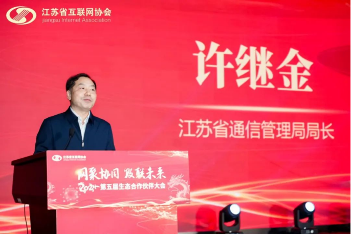 许继金在致辞中表示,过去的一年,江苏信息通信业统筹发展和安全,保持平稳向好的发展态势,全行业发展指标全国领先,数字底座稳步夯实,助力“智改数转网联”成效显著,电信市场环境和服务能力持续优化,用户合法权益得到切实保障,安全生产情况平稳有序,为推动全省经济社会高质量发展作出了积极贡献。同时,他对省互联网协会过去一年取得的成就表示祝贺,并对所有会员单位和合作伙伴的辛勤付出表示感谢。2024年,他对全省互联网行业提出新期望:全省互联网企业要发挥自身优势,大力开展技术创新与业务创新,为江苏数字经济发展不断增添新动能。一是要坚持科技高水平自立自强,踊跃投入互联网技术业务创新,为企业自身发展和互联网产业发展注入新动能;二是要积极推进融合应用,寻找互联网“新赛道”,推动“智改数转网联”,发挥好互联网对千行百业的赋能作用,助力江苏建设“数实融合强省”。三是要加强行业自律,共同维护公平的市场秩序,营造和谐规范的市场环境,树立健康的行业形象。省互联网协会要继续加强对会员企业发展的引导和服务,助力全省互联网行业发展取得新突破。作为互联网行业主管部门,省通信管理局将一如既往地支持行业发展,支持省互联网协会的各项工作。
