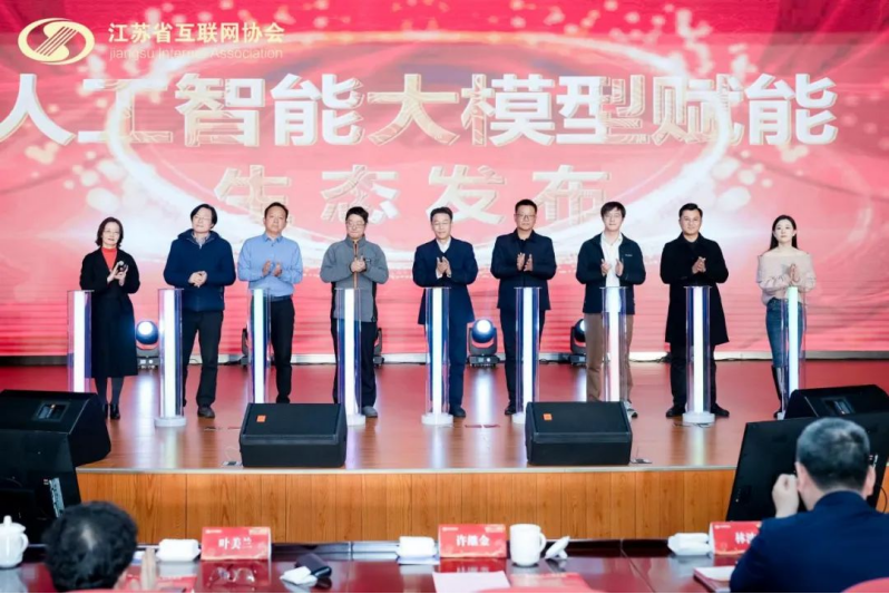 江苏省互联网协会副理事长、江苏移动副总经理关懿珉发布“人工智能大模型赋能生态”,阿里云、新华报业传媒集团、南京硅基智能科技有限公司、江苏汇智智能科技有限公司、南京理工大学、企查查科技股份有限公司、苏州清睿智能科技股份有限公司、红豆集团有限公司共同参与赋能计划。