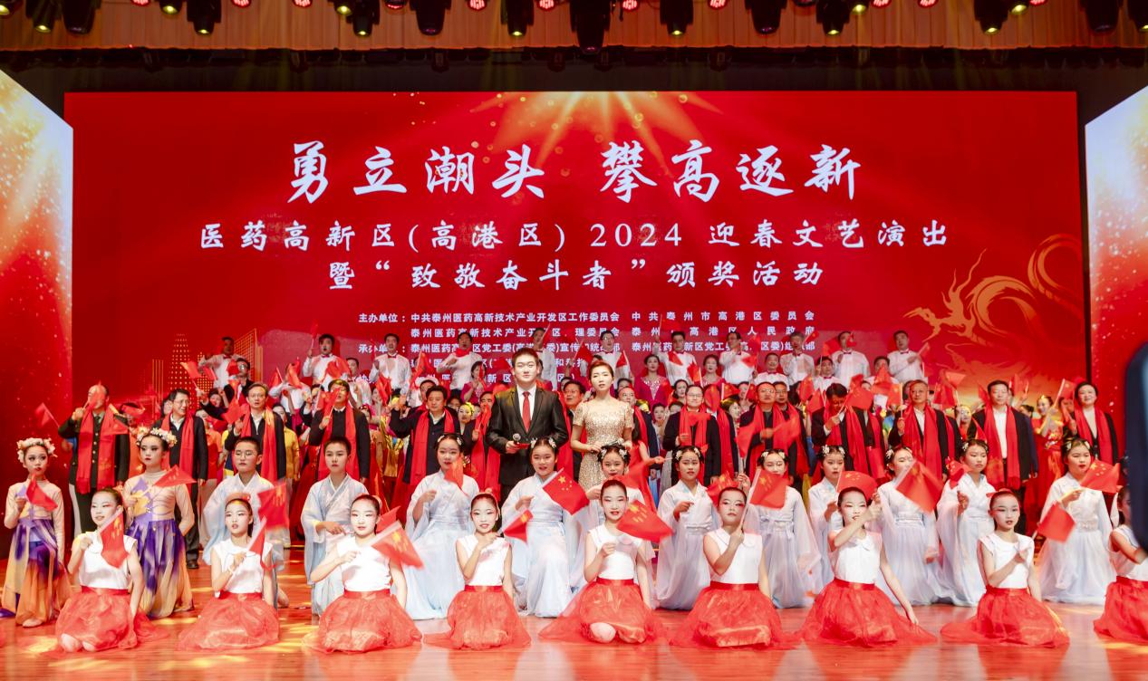 2月2日晚,泰州医药高新区(高港区)2024迎春文艺演出暨“致敬奋斗者”颁奖活动举办。泰州市副市长、医药高新区党工委书记、高港区委书记叶冬华,医药高新区党工委副书记、管委会主任,高港区委副书记、区长丁志强等区四套班子领导参加活动。