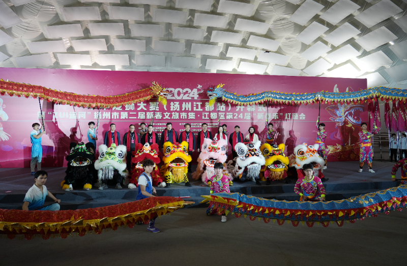 2月22日下午,2024年中华龙狮大赛开幕式暨“ZUI运河”扬州市第二届新春文旅市集·江都区第24届“新春乐”灯谜会,在南水北调东线源头绿廊公园开幕。