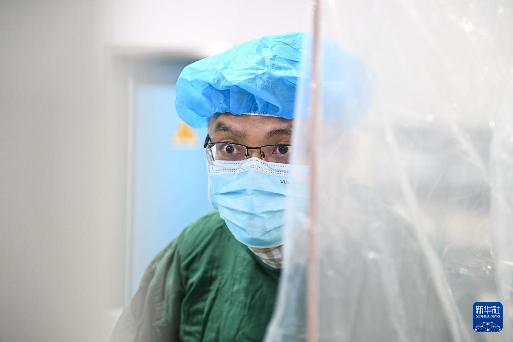 在南京市第一医院,张俊杰在心导管室为患者进行经导管二尖瓣缘对缘修复手术(2月20日摄)。
