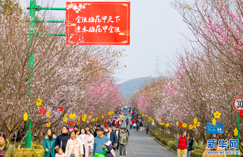 春和景明,万物复苏。在南京溧水傅家边,上千株梅花竞相吐艳,吸引大批市民游客。眼下,正值梅花盛开时节,人们纷纷走出家门,观花赏景,拥抱春天,赞叹绿色好生态、感受美好新生活。(沙芳如 报道员:刘伟)