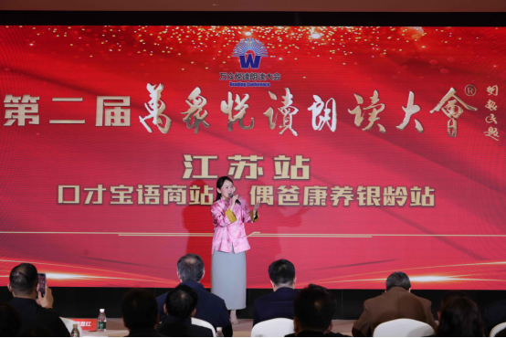 在江苏站启动仪式现场,首届万众悦读朗读大会全国总决赛成人组朗诵类特金奖获得者程芸现场带来获奖作品《徽州女人》。