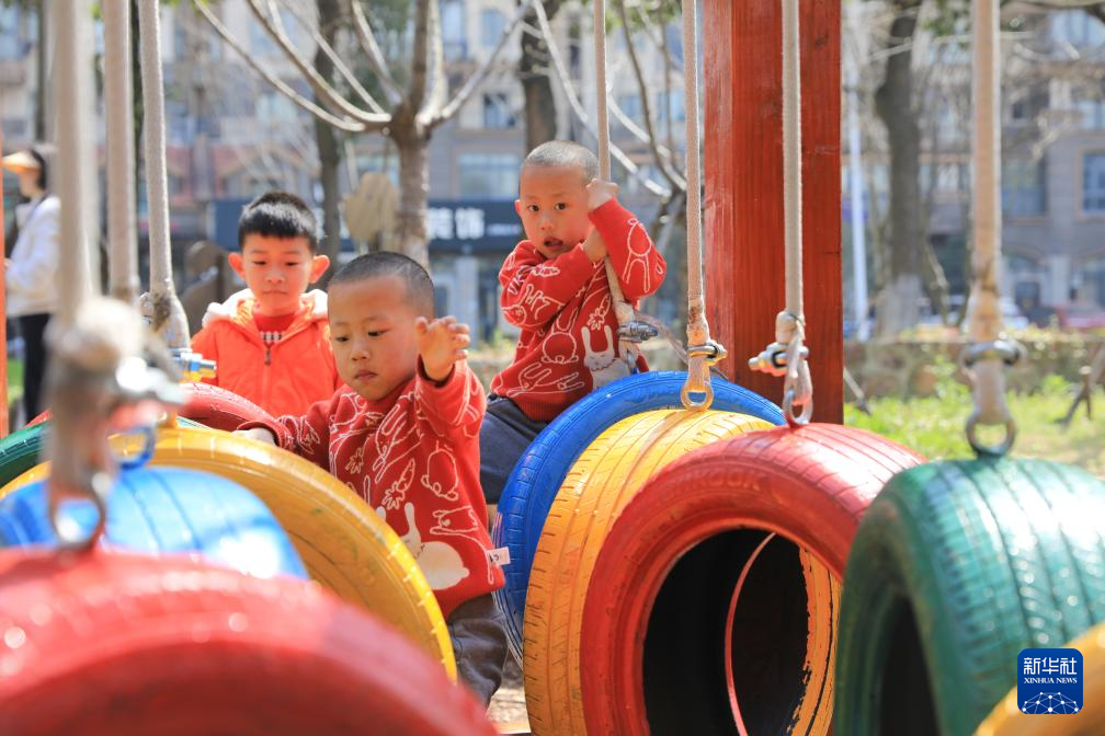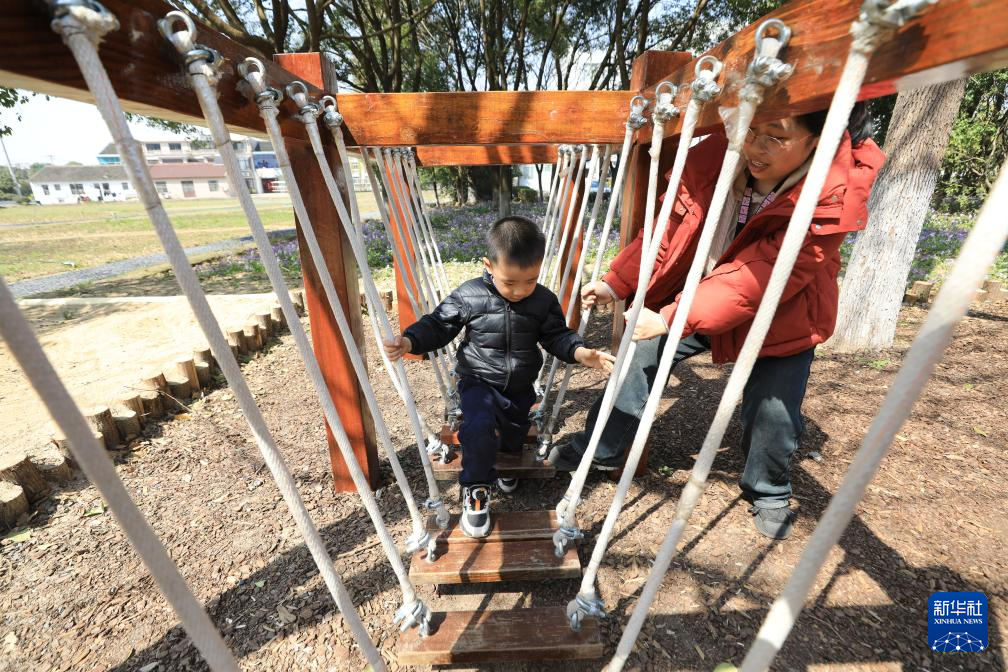 3月20日,孩子们在江阴市长泾镇的亲子游乐场玩耍。