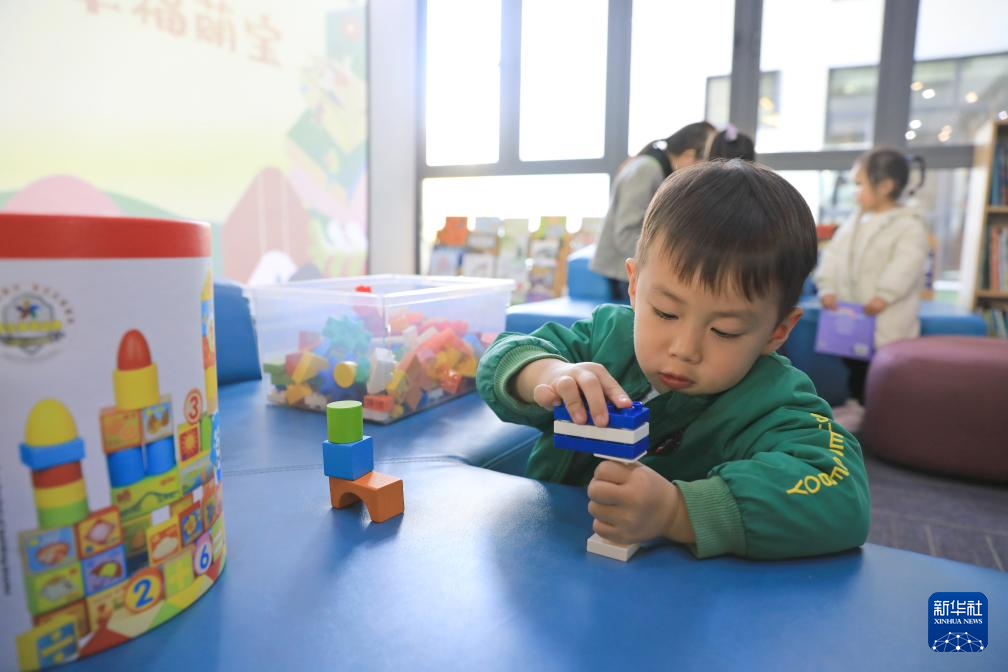 3月20日,幼儿在江阴高新区新时代文明实践所搭积木。