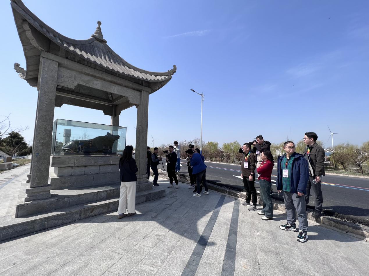 从樱花园出发,沿着二河西堤一路南行来到了淮阴区高堰村,左手边的二河波光粼粼,河岸梅花已绽放,柳树已抽芽。河堤上铁牛昂首屈膝俯卧在铁板底座上,守护淮水安澜。