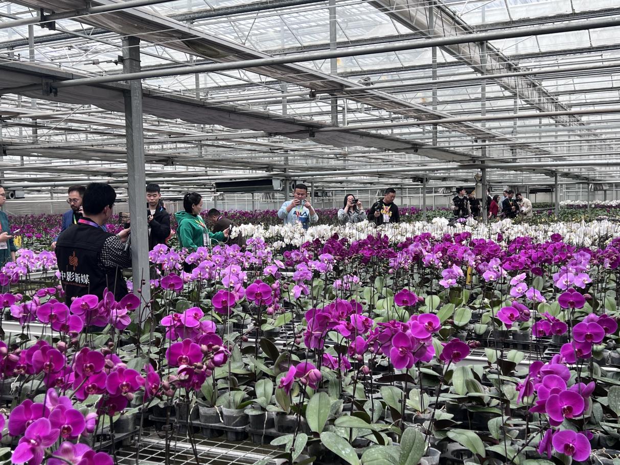 随后一行人打卡了亚洲最大的单体蝴蝶兰基地皇达花卉和菜趣园,走进温室大棚,绚烂绽放的蝴蝶兰让人宛若置身花的海洋,白色的蝴蝶兰清纯圣洁,粉红的秀丽可人,红色的艳丽动人。菜趣园里五颜六色的三角梅、各种各样的蔬菜为淮阴春天增添了绚丽的色彩。
