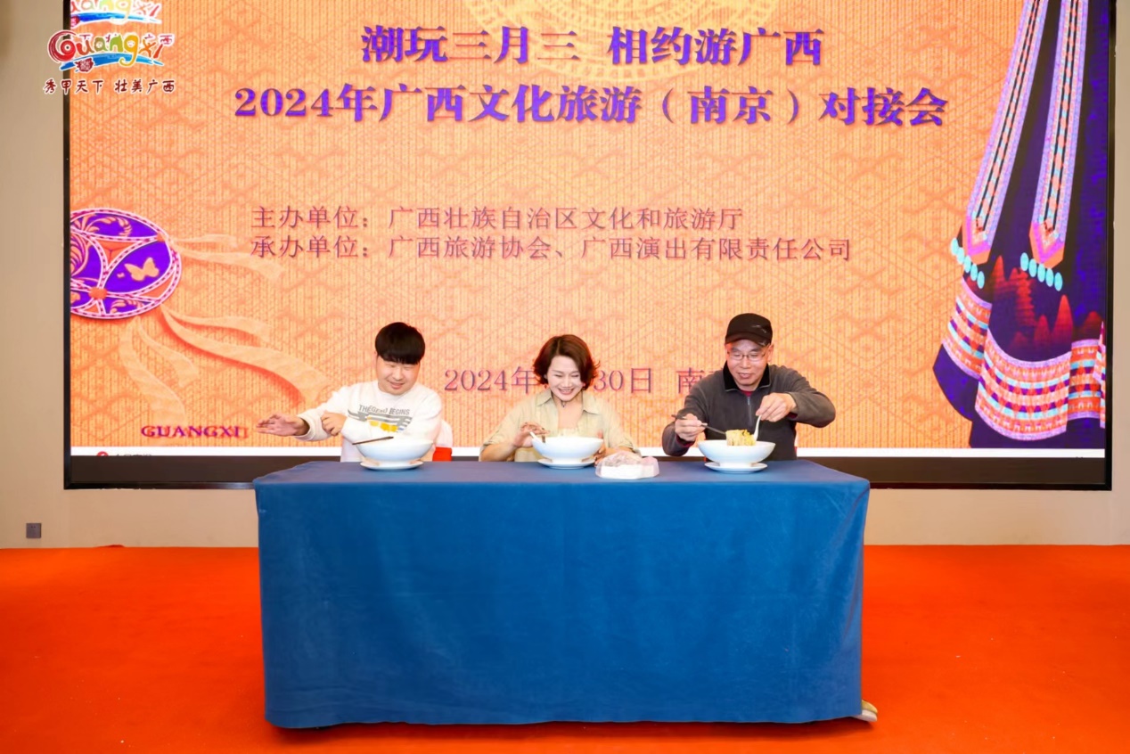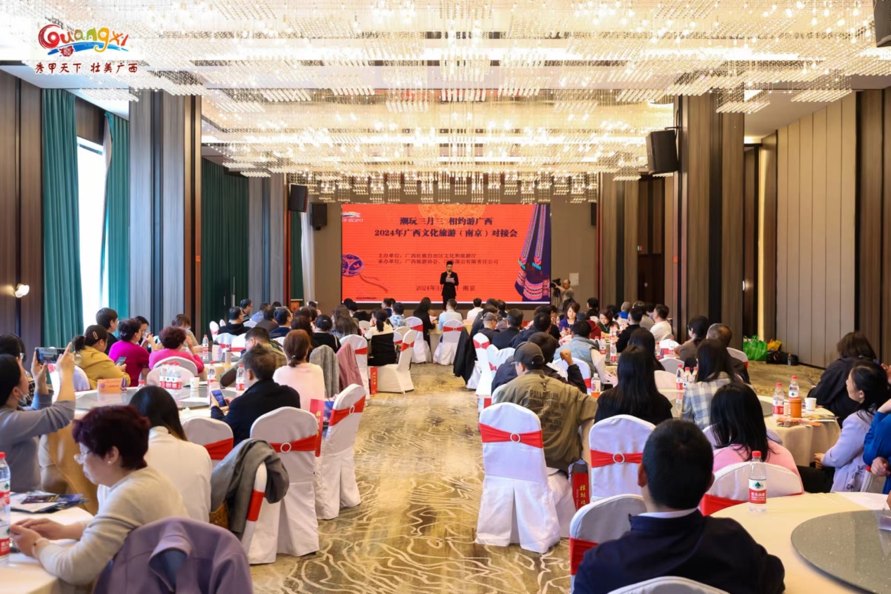 3月30日,由广西壮族自治区文化和旅游厅主办,广西旅游协会承办的“潮玩三月三 相约游广西”2024年广西文化旅游(南京)推介会成功举办。来自苏桂两地文旅行业协会、企业代表等130余人参加了本次活动。