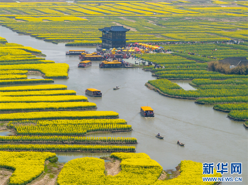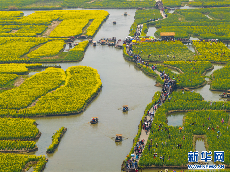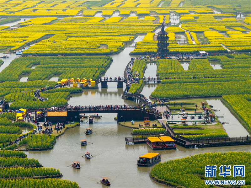 近日,在江苏兴化千垛菜花风景区,油菜花陆续绽放,人们踏青游玩,亲近自然,乐享春光。(沙佳仪 报道员:周社根)