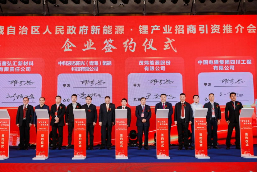 推介会上,藏青工业园区和阿里地区与中科液态阳光(青海)氢能科技有限公司、西藏中能中楷新能源有限公司等7个新能源及锂产业领域项目集中签约。