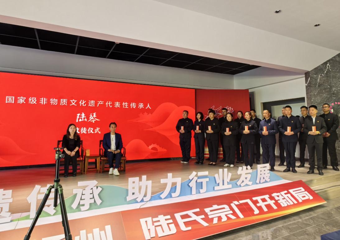 为带动非遗传承,陆琴领衔56名弟子开创修脚“陆氏宗门”。“今天,我是专门到扬州来拜陆琴师傅为师的。”来自山东烟台的曹玉林介绍,他为了考修脚师傅的职称多次来扬,也因此与陆琴结缘,“今天我们16个徒弟同时拜师,同时也跟40位师兄师姐们一起,加入陆师傅开创的修脚‘陆氏宗门’。”