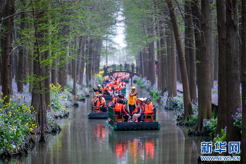 近日,江苏省兴化市里下河国家湿地公园春花烂漫,吸引众多游人避开节假日高峰时段,错峰出行,踏青赏花、乐享春光。(沙佳仪 报道员:周社根)