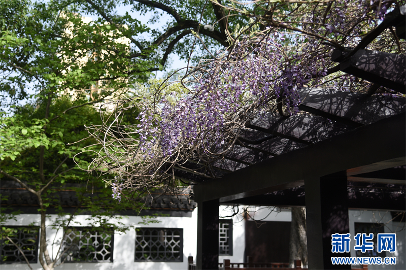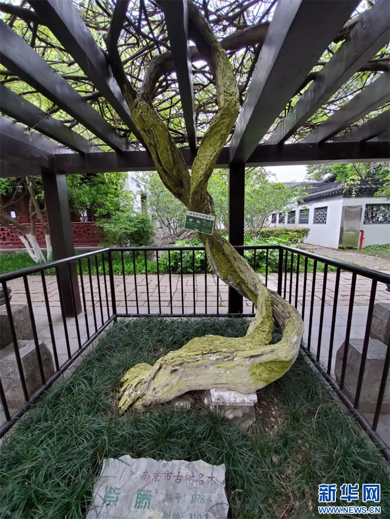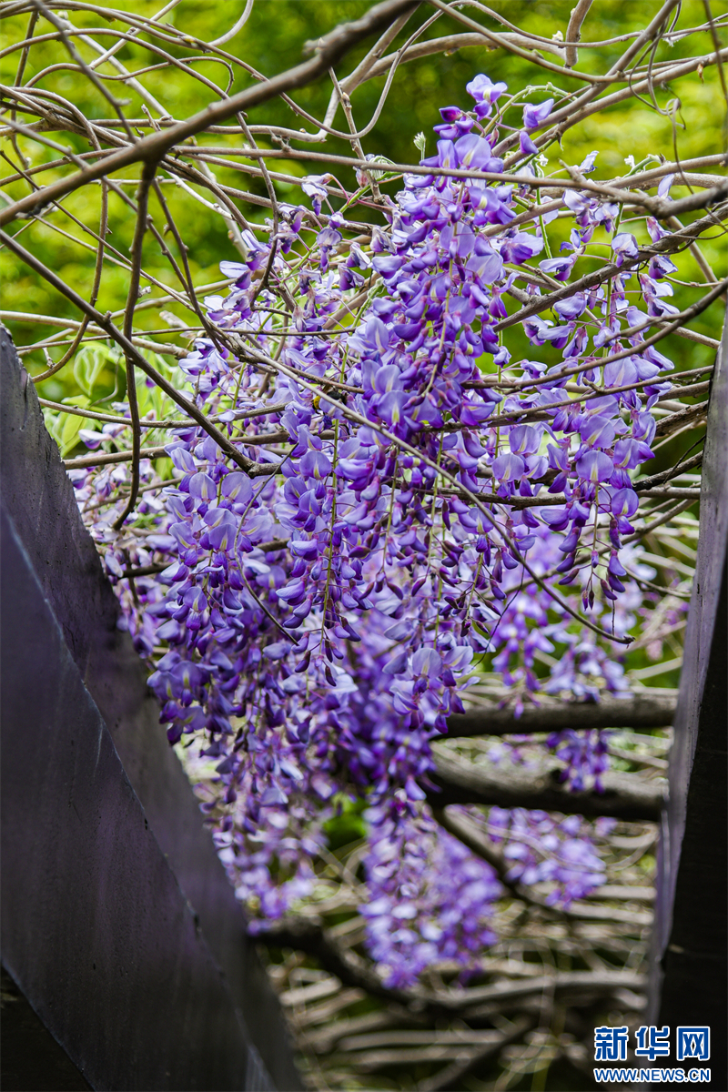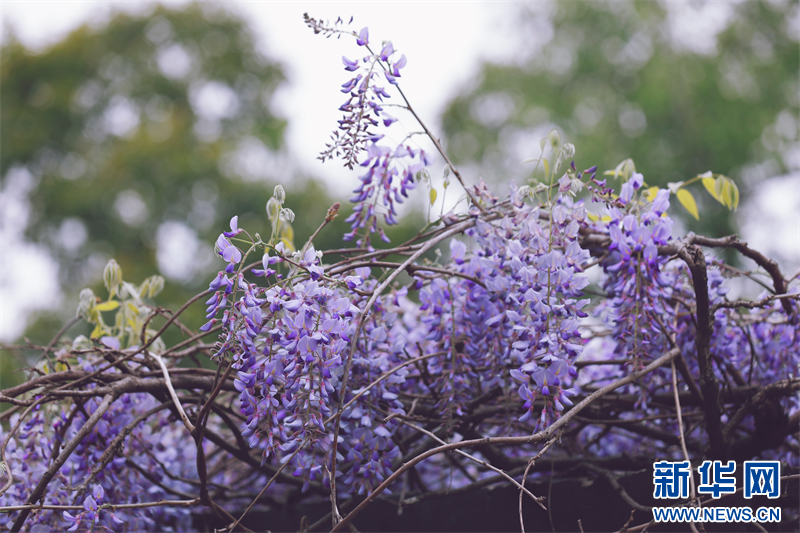 南京:百年紫藤花开如瀑 带来春日浪漫