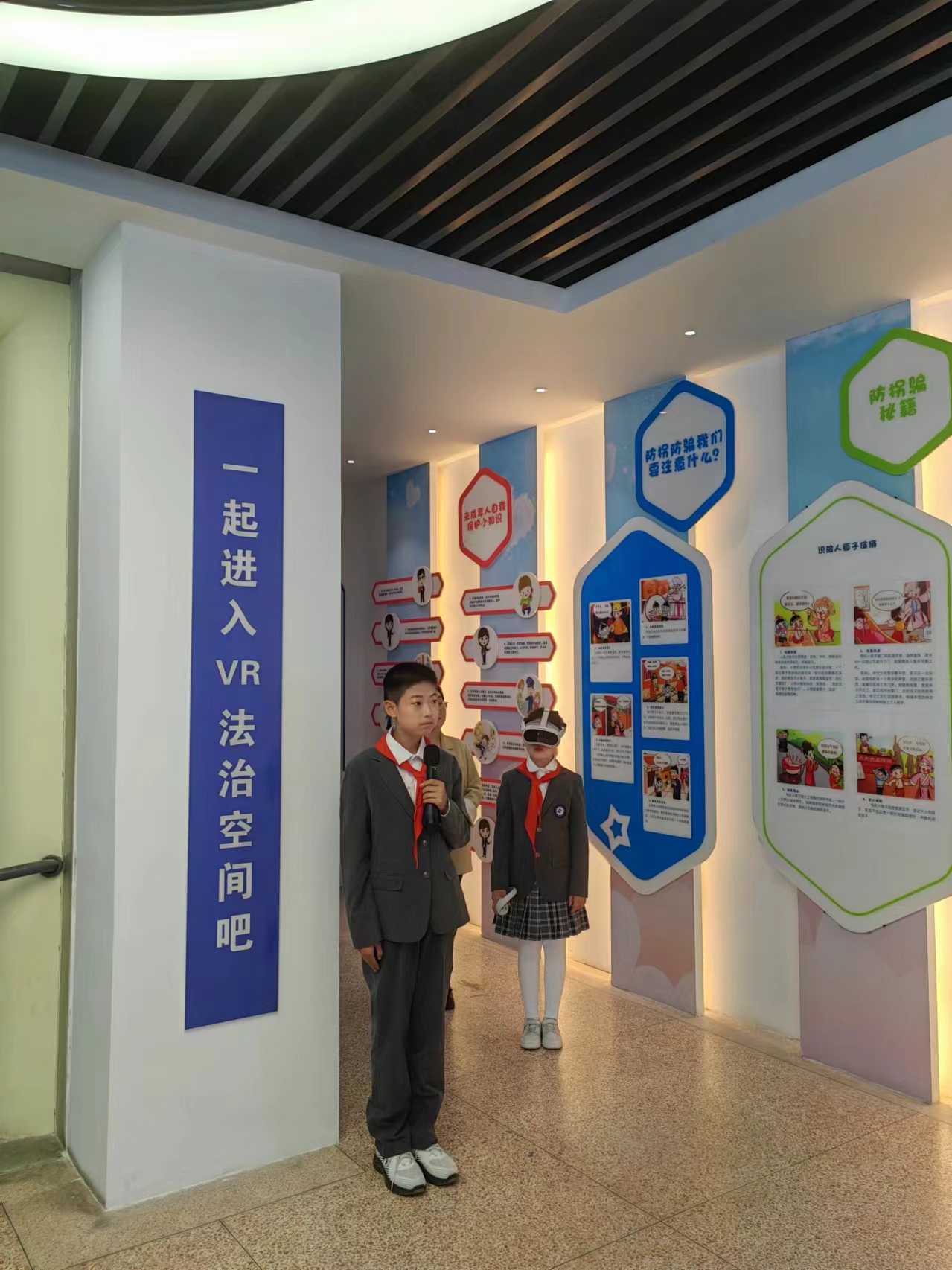 法安天下,德润人心。在苏州市金阊新城实验小学未成年人法治教育基地,“模拟法庭”作为未成年人社会实践体验站,使未成年人有机会通过角色扮演体验“庭审”;“法治阅读角”“宣传展示区”围绕未成年人网络保护条例等内容,通过图文结合的方式,通俗易懂地讲解各类法治小知识;“互动体验区”利用VR眼镜、动漫形象,让未成年人在互动体验中快乐学习,全面提升法治素养。