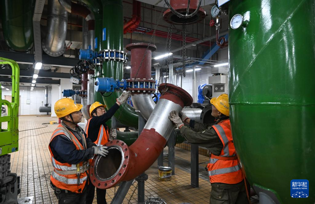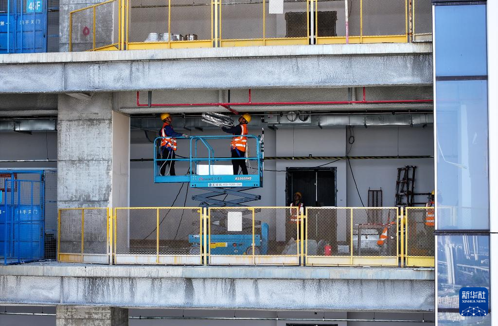 4月27日,在南京金融城二期(东区)项目主塔楼机房,中建安装集团的施工人员在吊装部件。中建安装集团作为该项目机电总包单位,目前正组织400余名施工人员推进主塔楼工程进度,确保按时完成建设任务。