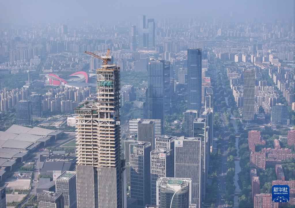 4月27日拍摄的南京金融城二期(东区)项目建设现场(无人机照片)。