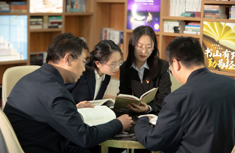 在静谧的职工书屋内,柔和的灯光洒在每一本精心摆放的书籍上,营造出一种宁静而专注的氛围。青年员工们围坐在书桌旁、沉浸在书海里,他们的眼神专注而深邃,仿佛与书中的世界融为一体。这正是姜堰烟草精心组织的“历史回声”读书沙龙活动,青年们在此共同交流学习。