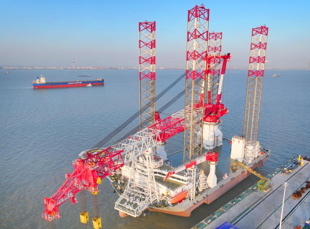 当日,由中铁大桥局和招商工业共同研制的最新一代2000吨自升式海上风电安装平台“大桥海风”号在江苏南通交付。“大桥海风”船长138米,船宽53米,拥有4根131米高的桩腿,多项性能指标达到国际领先水平。