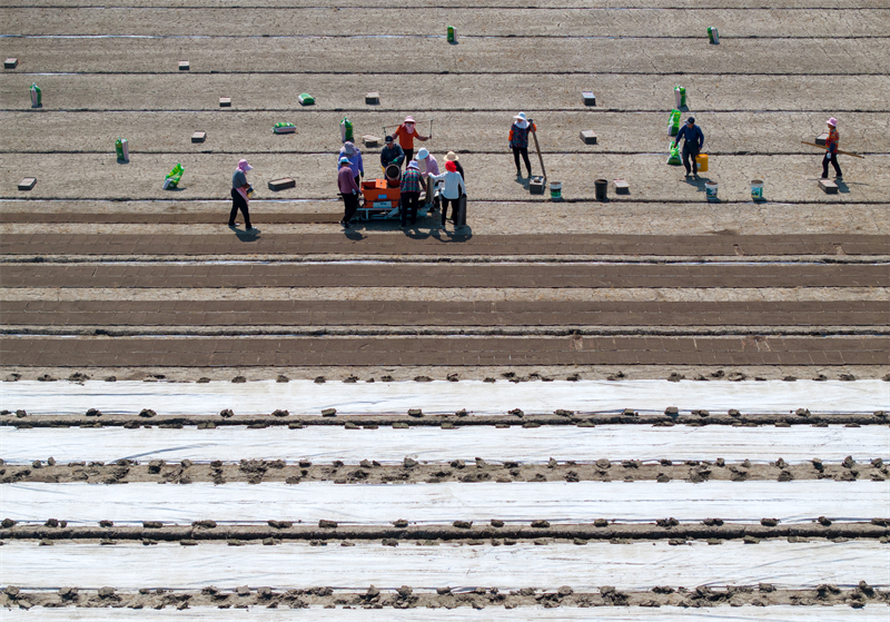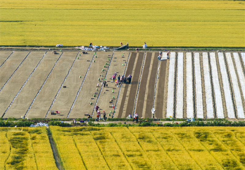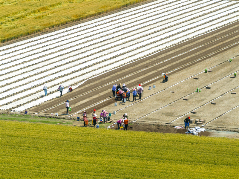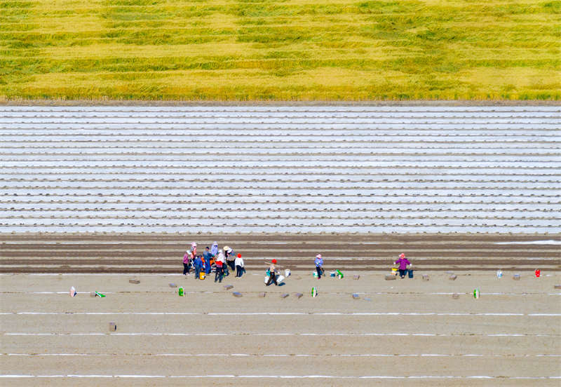夏播时节,在江苏省兴化市周庄镇边城村,水稻种植户抢抓农时集中育秧,田间一派繁忙的景象,拉开夏播生产的序幕。(沙佳仪 报道员:周社根)