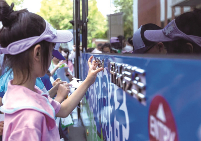 “这个车真好看,我要签上名字,妈妈快帮我和它合个影!”6月1日下午,由南京公交集团、南京市生态环境保护宣传教育中心主办的“CityBus巴士童画”活动在中山码头举行。30多名孩子在家长陪伴下用贴纸“共创”了以“保护生物多样性”为主题的公交车涂装,承诺以身作则保护生态环境。