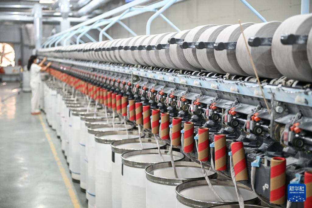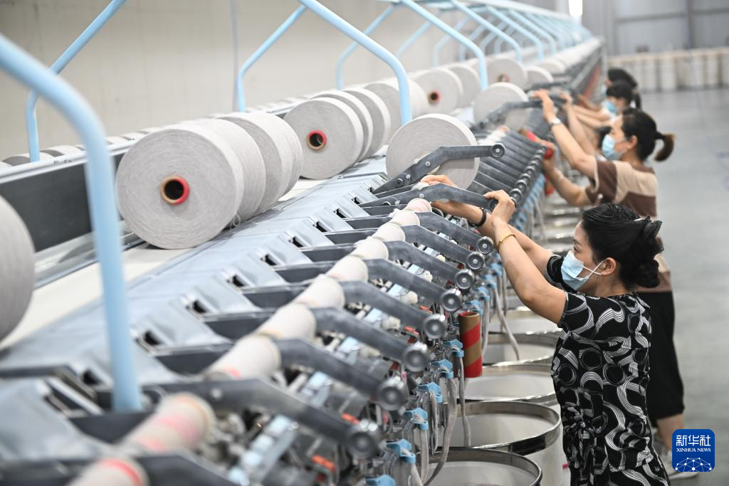 6月12日,在泗洪县金锁镇一家纺织企业,员工在车间忙碌。