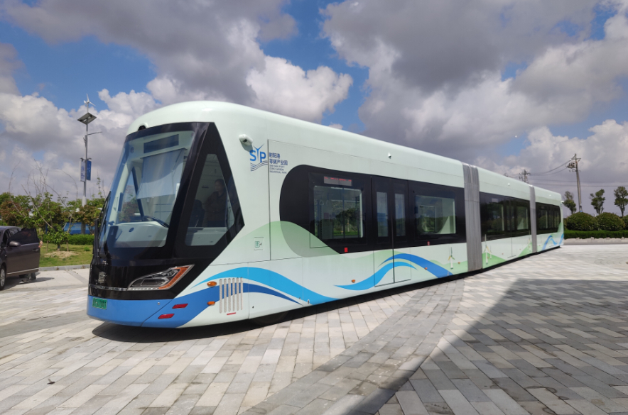为了满足社区居民的通勤需求,产业园还配备了一辆科技感十足的“零碳巴士”。全车长30米,双车头,特别的是它可以通过车顶光伏、绿电充能、电池储能等方式确保车辆运行。借助车载传感器,巴士能够精准地行驶在既定的“虚拟轨迹”上,实现智能运行,更加便捷环保。
