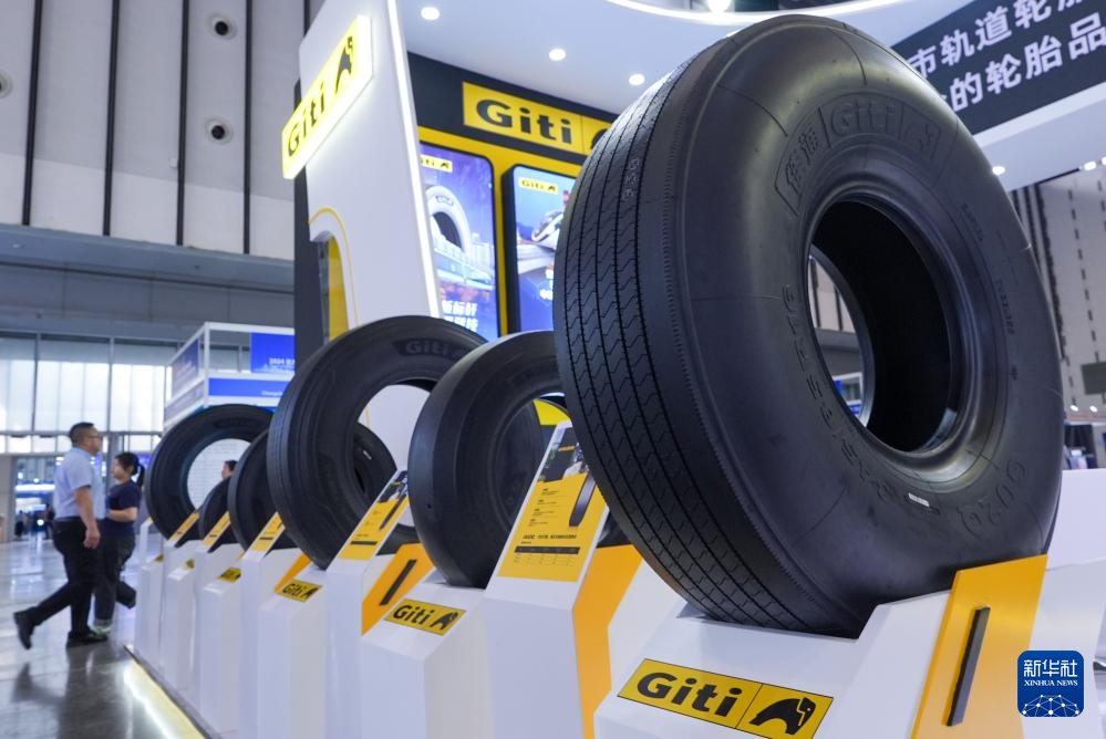 这是6月13日拍摄的佳通城市轨道轮胎展区。