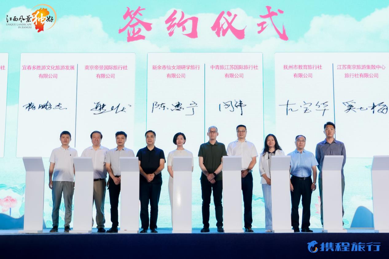 在活动现场,赣苏两省旅行社签订客源互送协议,并发布了“龙行龘龘 乐游江西”和“背诵诗词江西go”旅游优惠政策。其中,“背诵诗词江西go”主题活动,从6月15日到2025年2月底,全球大、中、小学生及研究生,只需按要求背诵诗文,成功背诵通关者即可免票游览江西百家景区(除十一、春节等法定节假日外)。