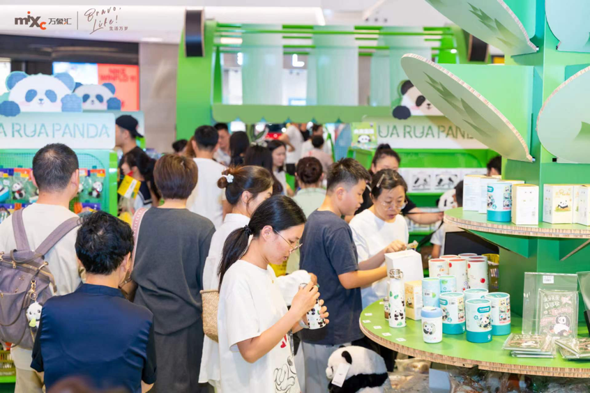 位于南京城北万象汇A馆的RUA RUA PANDA大熊猫文创快闪店,展示了500余种大熊猫文创产品,其中包含许多热销熊猫文创产品,比如来自熊猫工厂的不同月龄的熊猫玩偶、来自成都大熊猫繁育研究基地的超高人气熊猫周边、来自Pandapia的新生儿熊猫伴伴系列玩偶等。快闪店内“熊猫邮局”专区,内含来自成都邮政的萌趣好礼,包括但不限于熊猫邮局出品的大熊猫限量明信片及邮票等,独家打卡互动;“大熊猫乐园”,提供超治愈RUA猫互动体验,包括从一个半月到三岁龄的1∶1超“仿真”熊猫。其中,三岁龄的1∶1仿真熊猫“花花”也首次来到南京。