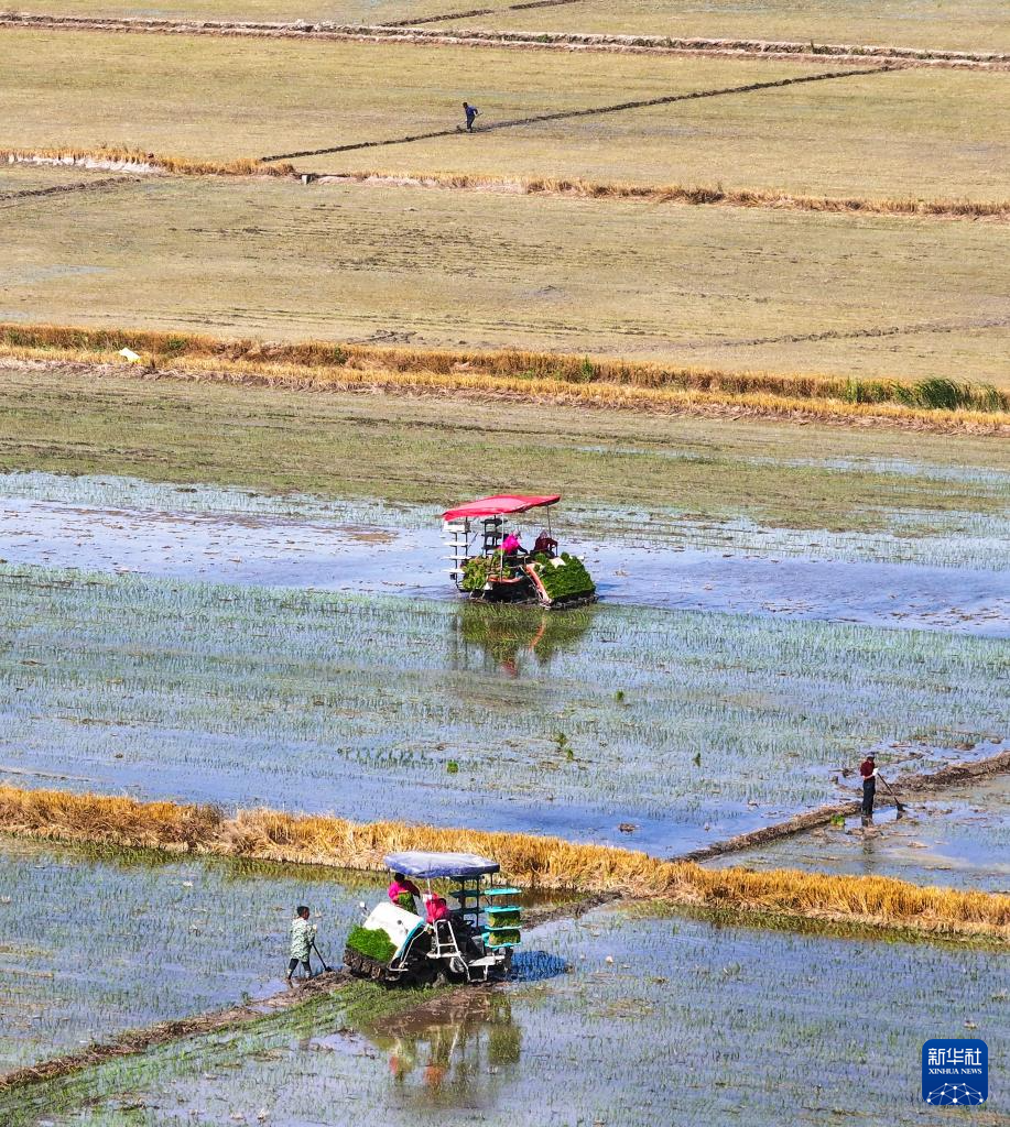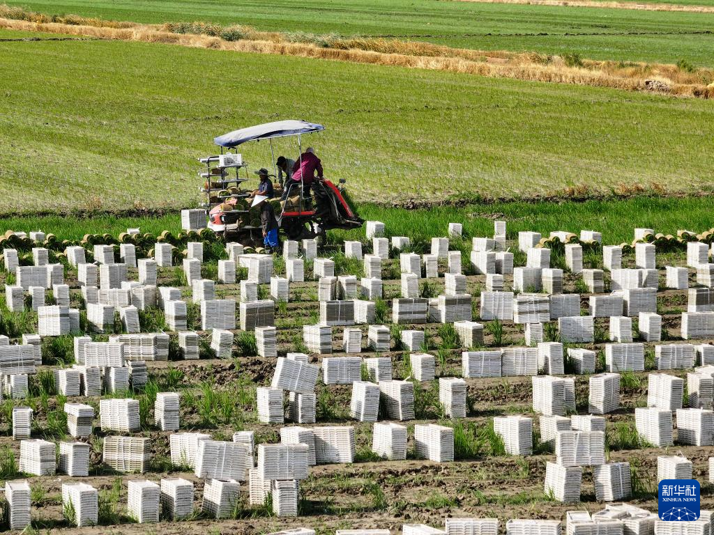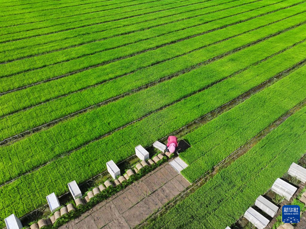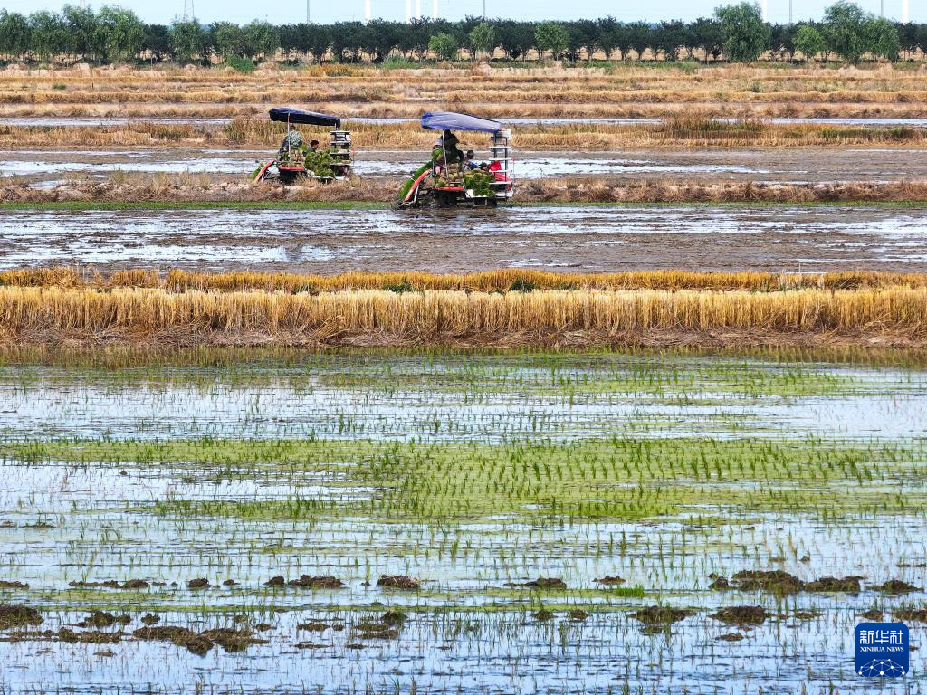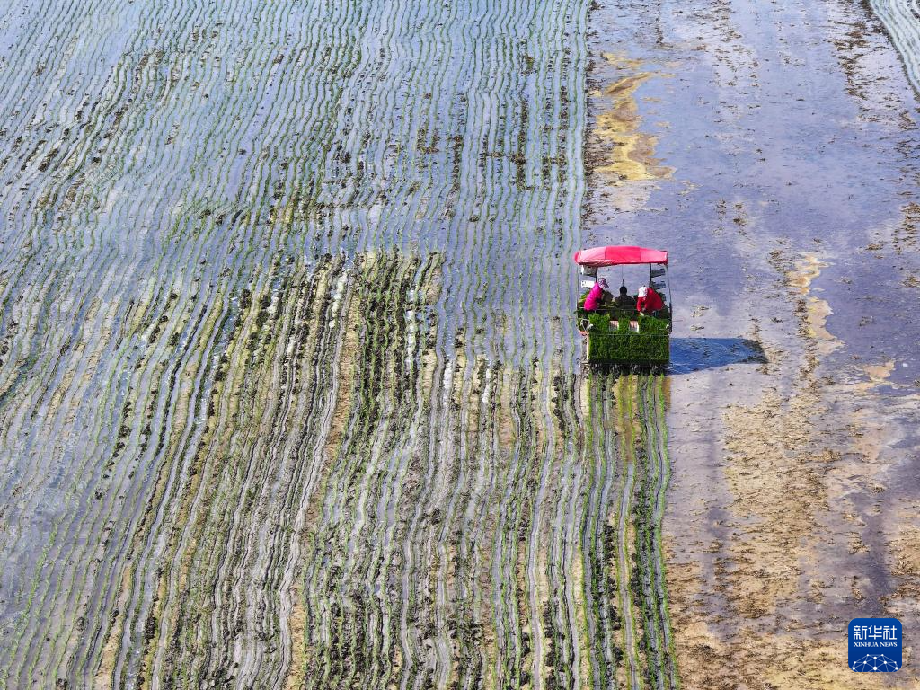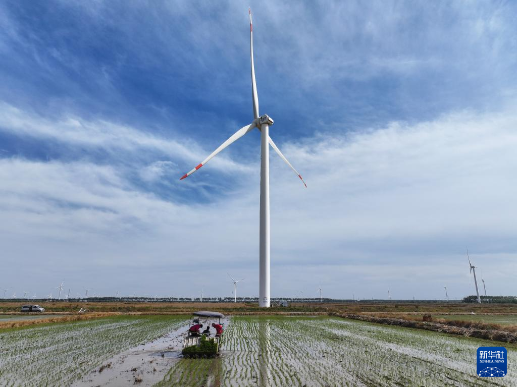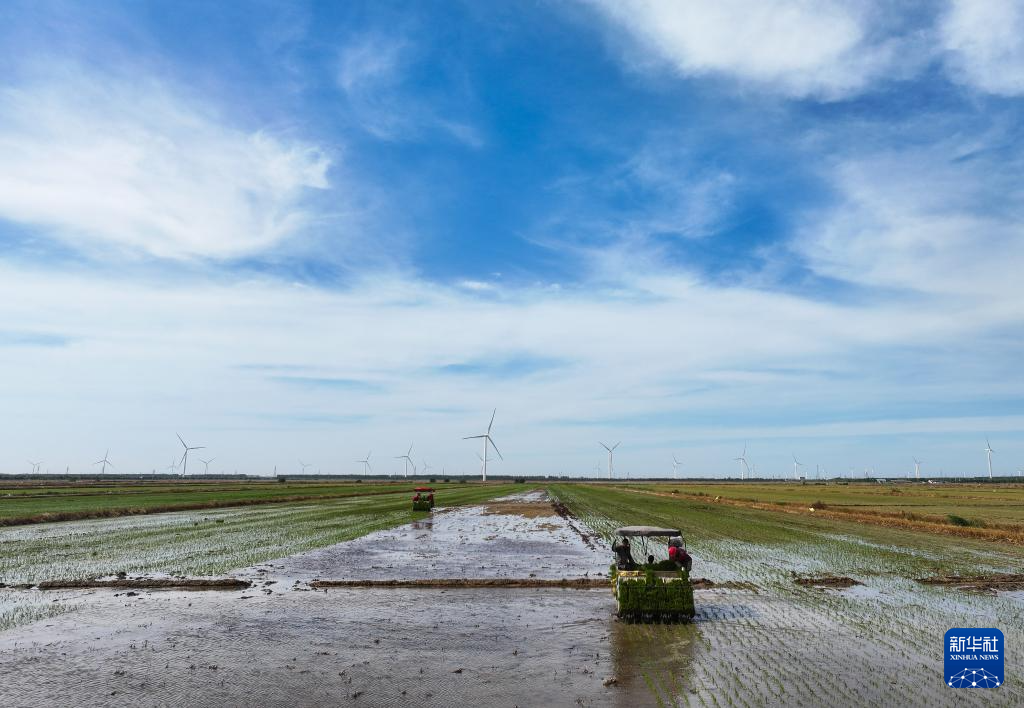 “三夏”时节,位于江苏省盐城市射阳县的江苏农垦临海农场抢抓农时,开展机械化插秧作业。农人、农机、风车在蓝天白云映衬下,构成一幅幅美丽的乡村图画。据了解,今年临海农场水稻种植面积8.4万余亩,目前插秧作业已完成过半。