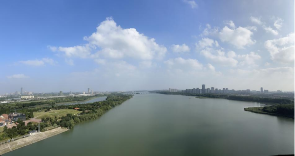 六月,京杭大运河扬州段,两岸绿意盎然,河水透亮如镜。万福大桥静静地横跨河面,其下运河的水面闪烁着粼粼波光,桥身雕琢的多样“福”字诉说着扬州厚重的历史故事。塔楼工作人员介绍,当晴空万里,站在七楼的观景点,南边五峰山的壮丽景色尽收眼底。环顾四周,城市与自然和谐相融,一片翠绿的城市轮廓、七条河流与八座岛屿的天然画卷,以及江广新城的现代活力,都在这幅宏大的视角中展现无遗。