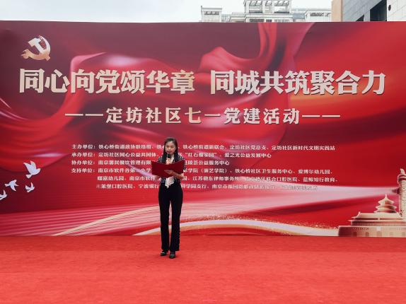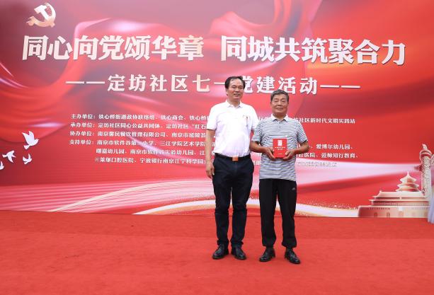 现场,铁心桥街道党工委委员、政协联络组负责人俞建宁为老党员陈嘉财颁发了“光荣在党50年”纪念章,定坊社区副主任司宏分别为9名优秀党员志愿者、6家优秀“同心公益共同体”志愿单位颁发荣誉奖杯,感谢他们为社区治理做出的贡献,鼓励他们不忘初心,继续参与到社区各类服务中来。南京馨民餐饮管理有限公司党支部书记苏静作为“同心公益共同体”代表发言,分享了自己的公益经历和感悟,让在场的每一个人都为之动容。