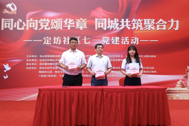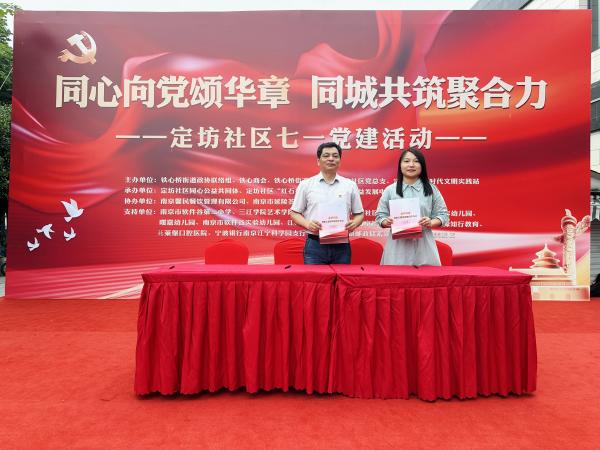 活动现场,定坊社区还与南京建工集团有限公司、三江学院艺术学院(演艺学院)、南京雨花建设发展有限公司等8家单位进行了共建签约,进一步扩充了“同心公益共同体”的社区治理力量。