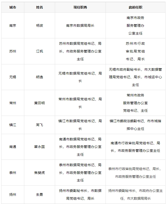6月25日,泰州市第六届人民代表大会常务委员会第十七次会议通过,决定任命焦斐虎为泰州市数据局局长,免去其泰州市行政审批局局长职务。至此,江苏省市两级数据局已全部完成挂牌,13个设区市首任局长也已全部明确。
