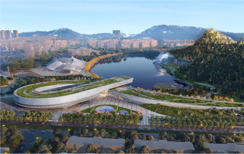 这座正在紧张建设中的展馆,就是众多人翘首期待的苏州科技馆。它位于苏州高新区金山东路南、狮山广场东北部,总建筑面积约6.3万平方米,其中,可布展面积4万平方米。从建筑形态来看,苏州科技馆显得卓尔不群:整座展馆依山傍水而建,与周遭环境和谐共生,毫无违和感;展馆建筑物主体从狮子山底部横逸而出,然后又折回循环,仿佛一个充满未知悬念的巨大符号;从视觉呈现上看,展馆金属立面延展开去,如同一幅色泽精美的苏州丝绸;展馆外墙的金属网表皮通过从不透明过渡到透明来控制采光和太阳能,尽显科技张力。