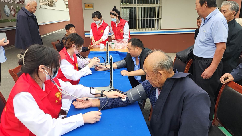 关爱群众身心健康,持续开展义诊下村活动。组织医务志愿者积极热心地为群众们进行血压、血糖、心电图等健康检查,细心询问他们的身体状况、日常饮食情况,就群众常见病、多发病等问题以及合理膳食、规范用药等方面进行现场指导。同时,针对农村老人居多、行动不便等实际情况,医生上门进行健康检查,打通服务群众“最后一米”。
