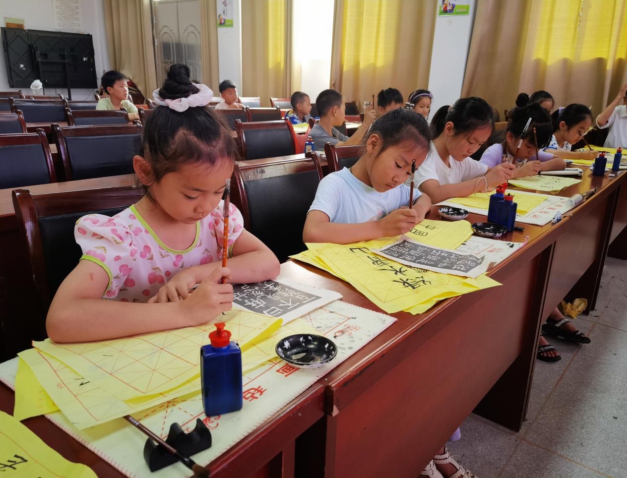 在书法指导课上,老师仔细纠正小朋友们握毛笔姿势和手部发力点,并详细讲解了横、竖、点、捺等基本笔画是如何起笔、运笔、顿笔,以及所用力道。小朋友们认真练习,在一笔一画中深切感受到了书法艺术的魅力,在练好字的同时还磨练了意志、提高了修养。