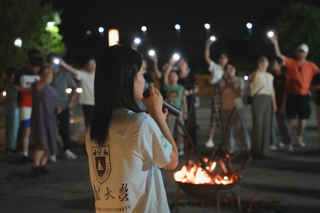 活动结束的前一天晚上,参与者们围在篝火旁跳舞。火光舞动,照亮夜空,志愿者与孩子们手牵手、肩并肩,脚步随音符跳动,歌声伴音律回转,现场热闹非凡。