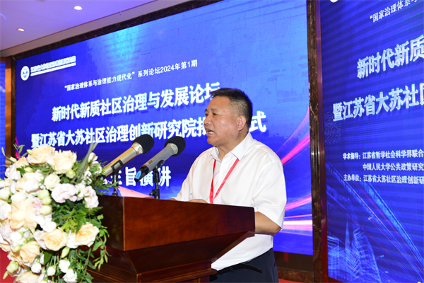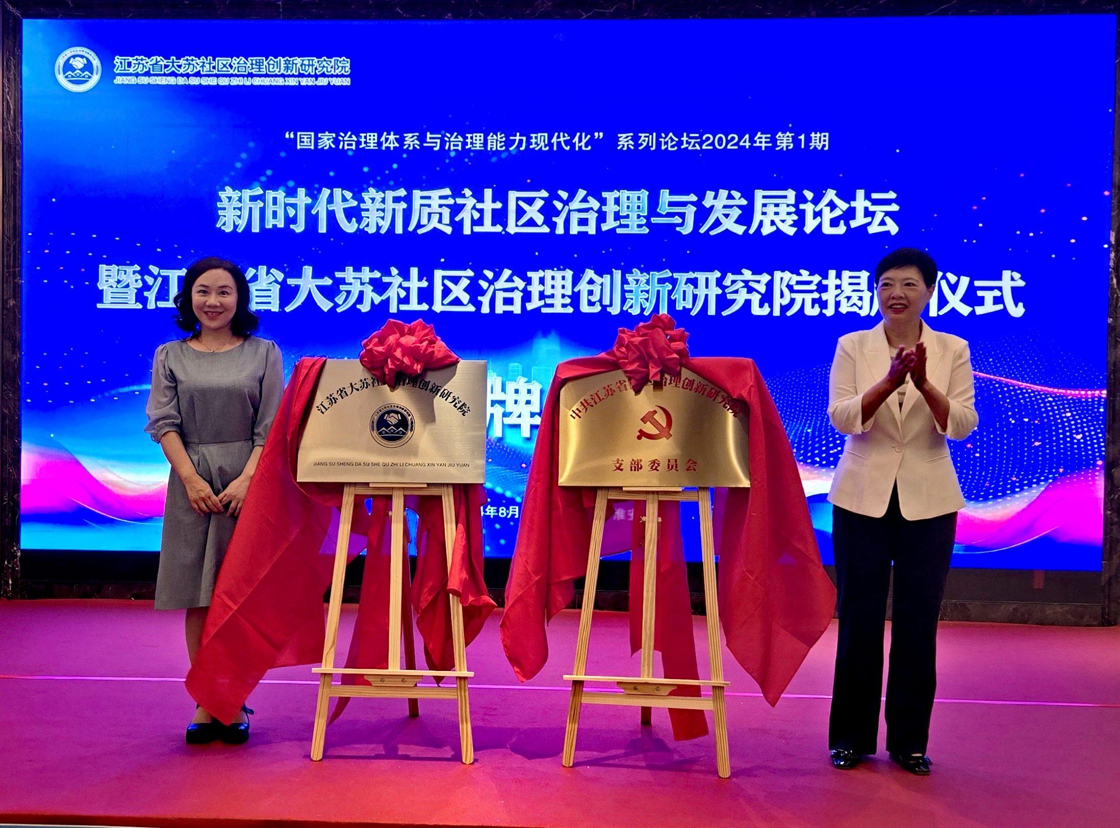 8月11日,新时代新质社区治理与发展论坛暨江苏省大苏社区治理创新研究院揭牌仪式在江苏淮安京仕国际酒店举行。淮安市委副书记赵正兰、江苏省社科联党组成员、秘书长程彩霞出席会议,并为大苏研究院揭牌,省社科联秘书长程彩霞、中国人民大学副教授、中国人民大学公共政策研究院社区治理与政策研究中心主任陈幽泓致辞。来自北京、上海、深圳、杭州、武汉、宁波、西安及省内120多名专家学者、嘉宾集聚一堂,共同见证了大苏研究院的成立。