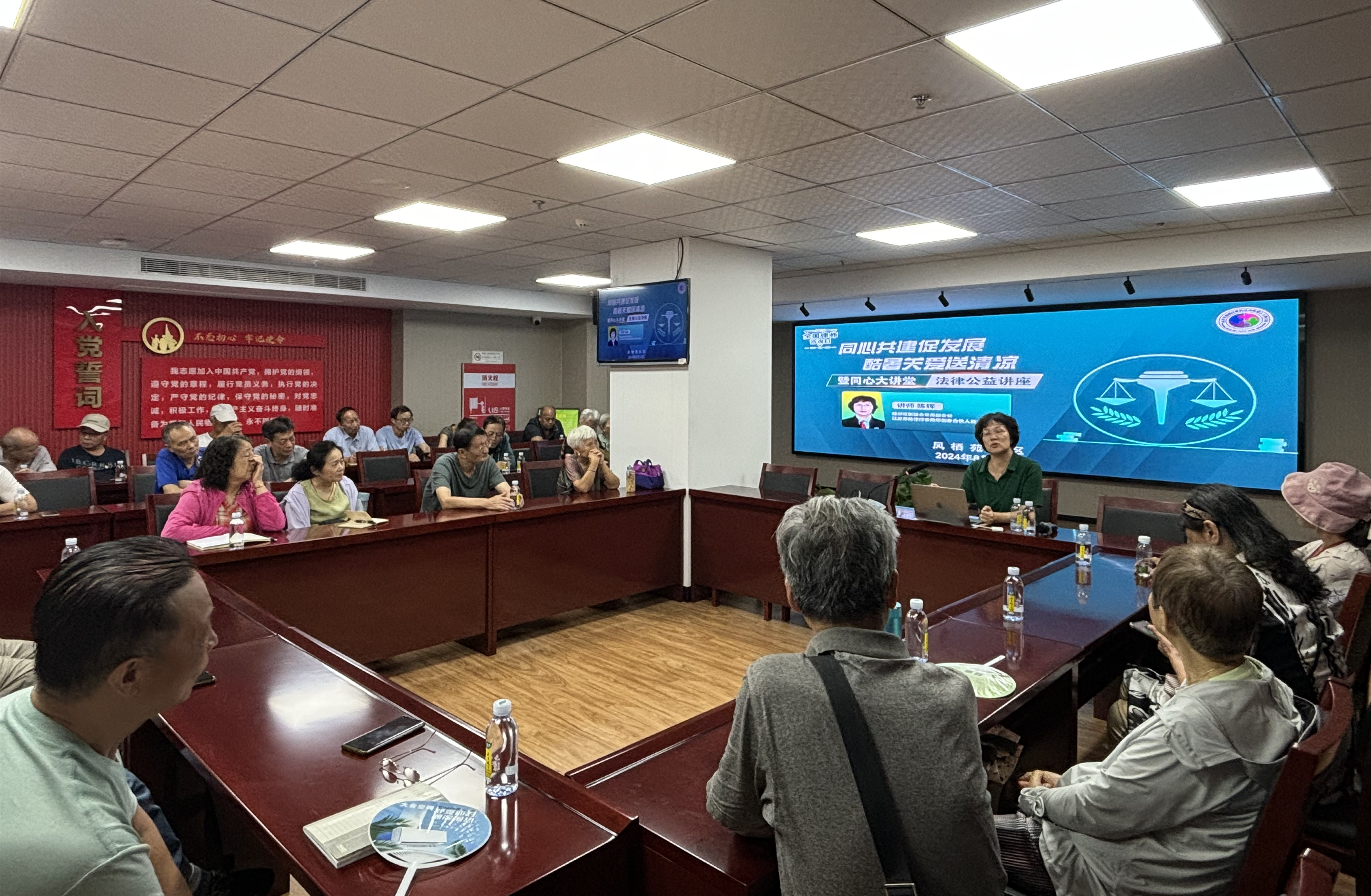 本次活动分为两场,上半场是在炎热的夏季,向辛勤工作的环卫工作者表达敬意和关爱,给他们送去清凉和关怀;上半场是由“同心大讲堂”陈辉律师带来法律公益讲座。