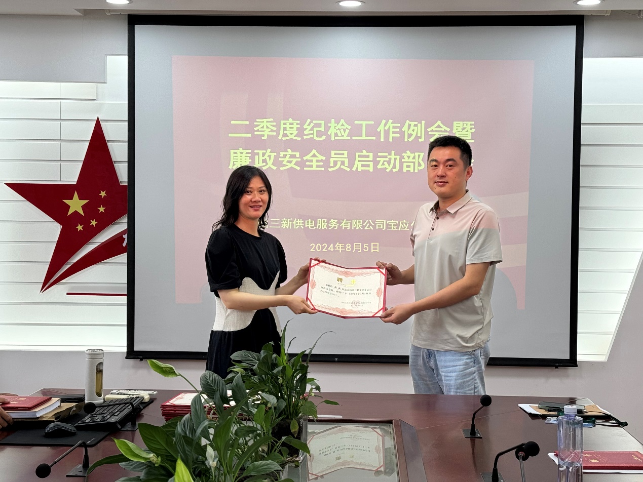 为进一步压实“两个责任”,完善纪检队伍建设,8月以来,国网宝应县供电公司开展廉政安全员聘任活动,通过学廉、考廉,对合格的廉政安全员颁发聘书、监督证,全面提升基层部门自我监督能力,将监督延伸到“最后一公里”。
