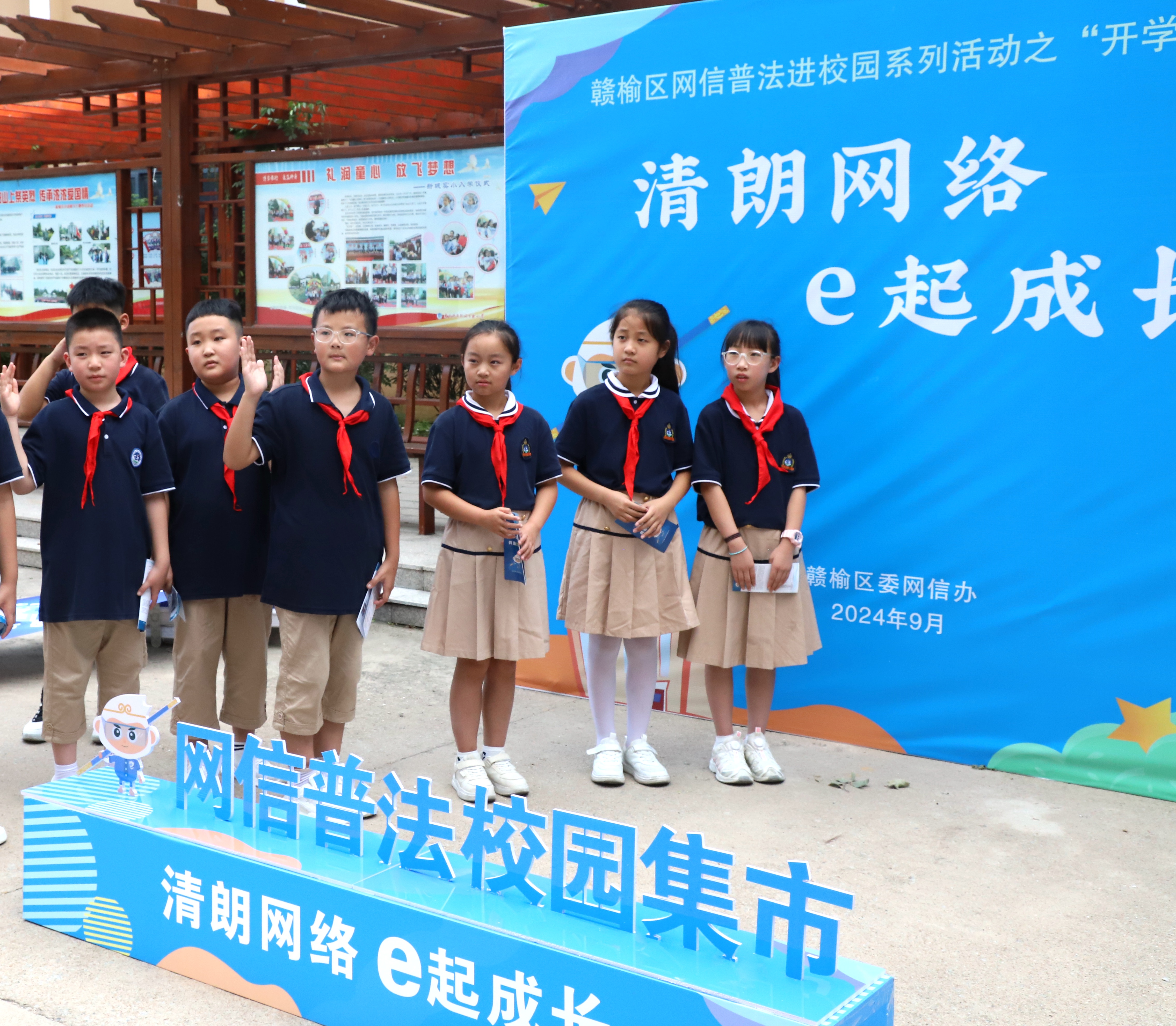 近日,连云港市赣榆区委网信办联合区教育局在新城实验小学开展网信普法校园集市活动,本次活动以“清朗网络e起成长”为主题,上演了一场别开生面的网络普法“开学第一课”,帮助同学们更好地适应新学期的学习生活。