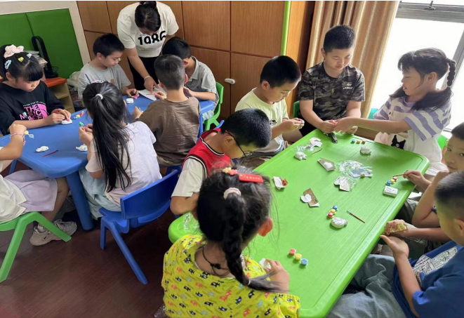 阅读后的游戏环节是孩子们喜欢的涂鸦活动,桌上摆满了多种形态的陶瓷军人娃娃和五彩斑斓的颜料画笔,孩子们迫不及待地拿起画笔,根据自己心中对军人的印象,认真地为陶瓷娃娃涂上心仪的颜色。孩子们不仅锻炼了动手能力和创造力,更在交流中培养了团队合作精神和社交能力。