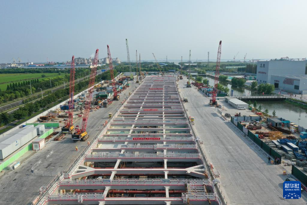 9月4日,工人在海太长江隧道南段作业(无人机照片)。海太长江隧道项目位于苏通大桥下游约8公里,北接南通海门、南连苏州太仓、常熟;起点与G40沪陕高速公路相接,终点与G4221沪武高速公路相接,路线全长39.070公里,其中过江隧道长11.185公里。全线采用双向6车道高速公路标准,设计时速100-120公里。