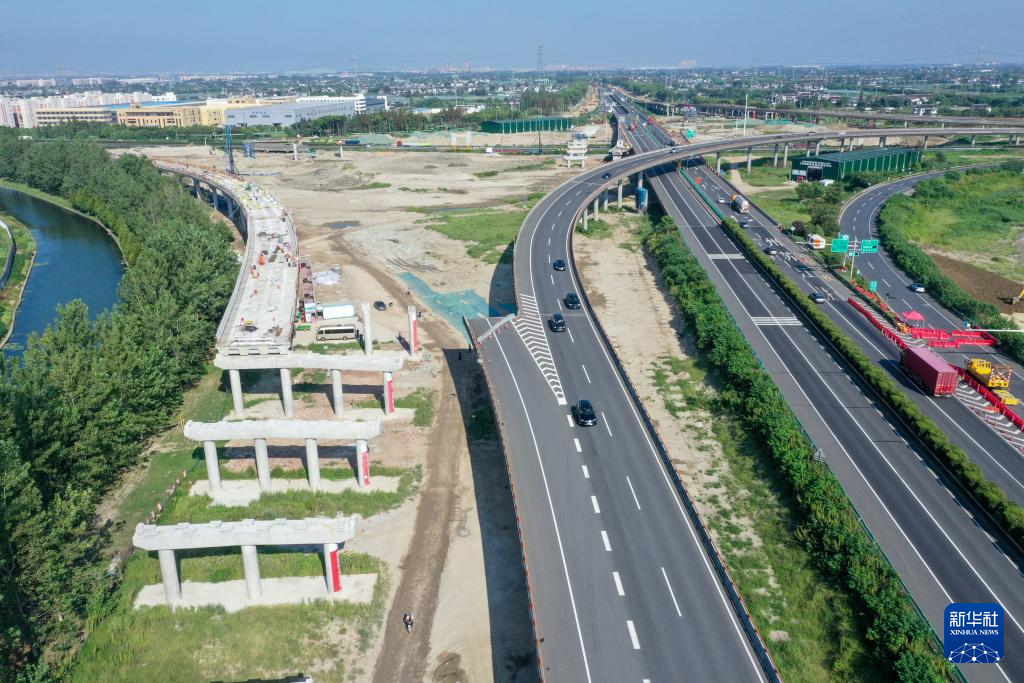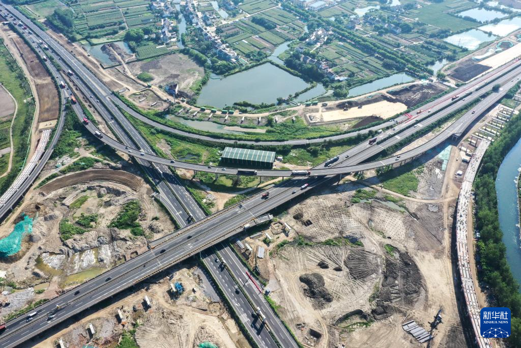9月5日,沪武高速公路太仓至常州段扩建工程项目江阴段跨主线桥正在扩建施工中(无人机照片)。沪武高速公路太仓至常州段是沪武国家高速公路(G4221)的重要组成部分,目前,扩建工程全长134.865公里。全线采用两侧拼宽为主的总体扩建方案,浏河大桥北桥头至太仓北枢纽段、董浜枢纽至常州南互通段由双向六车道扩建为双向八车道,太仓北枢纽至董浜枢纽段由双向六车道扩建为双向十车道。