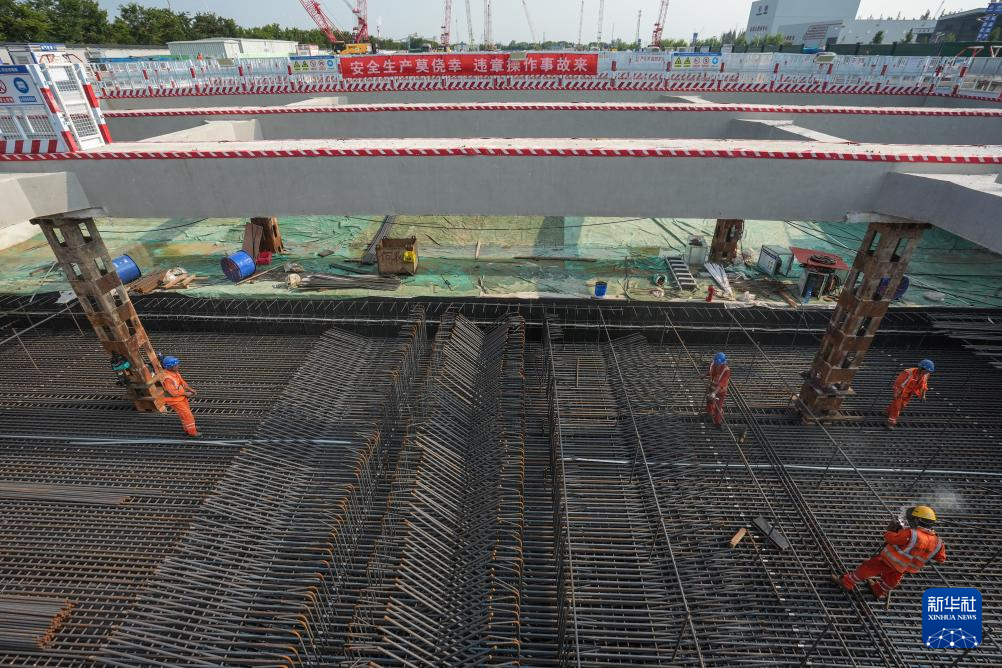 9月4日,工人在海太长江隧道北段始发井作业。海太长江隧道项目位于苏通大桥下游约8公里,北接南通海门、南连苏州太仓、常熟;起点与G40沪陕高速公路相接,终点与G4221沪武高速公路相接,路线全长39.070公里,其中过江隧道长11.185公里。全线采用双向6车道高速公路标准,设计时速100-120公里。