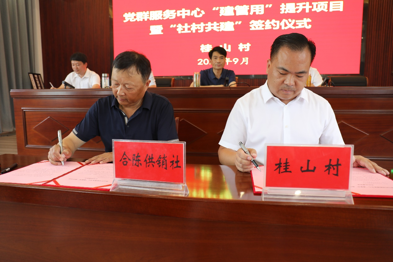 合陈供销合作社副主任杨新与桂山村签订“社村共建”协议。