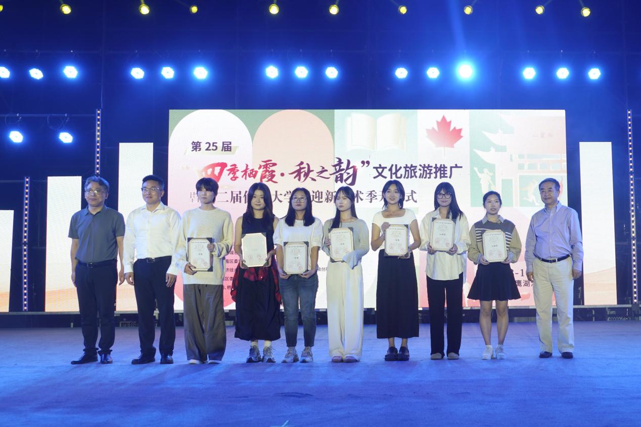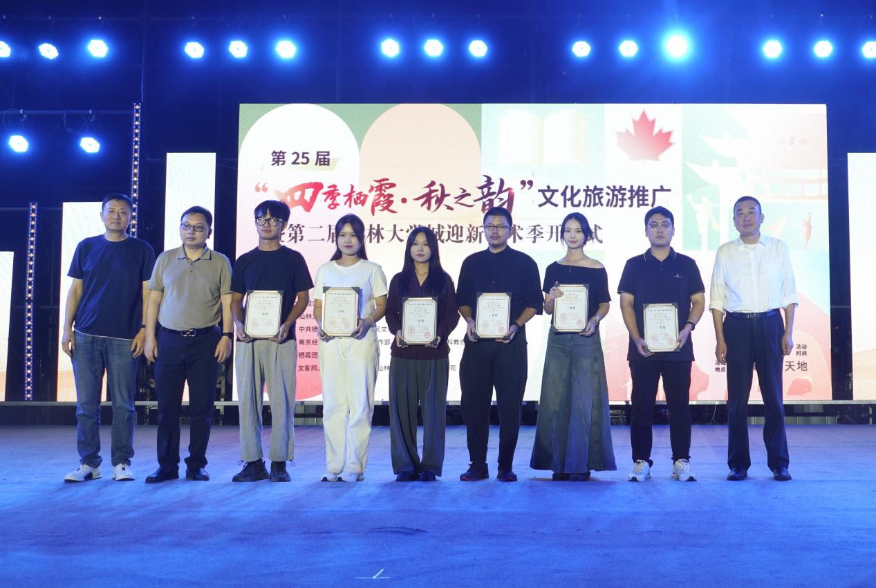开幕式上,主办方分别为仙林大学城艺术季雕塑绘画、文创设计大赛获奖人员颁奖。汇聚栖霞文艺精粹的精彩节目也陆续登场,歌伴舞《青春之光》展现大学生们的青春活力与自信,器乐表演《秋韵华章》通过独特的音乐语言描绘栖霞秋季的独特魅力,独唱《大美栖霞》唱出栖霞的风景与风华。